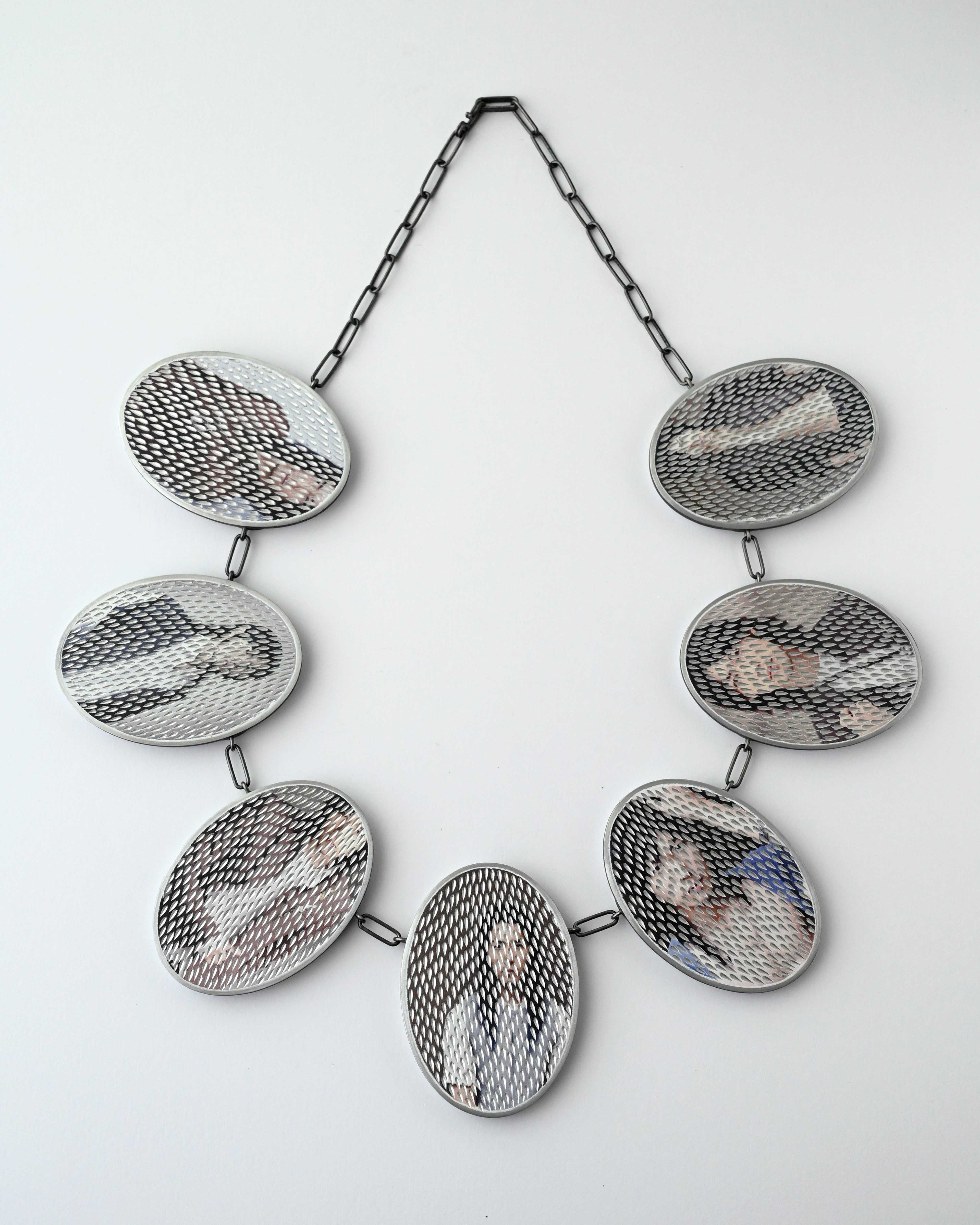 本シリーズは、厳密なルールに基づいて運用されています。AIによるポートレート生成は1日につき1枚のみとし、常に同一の個人情報プロンプトを使用します。月ごとに新たな鏨を一本自ら制作し、その月に生成されたすべての作品に用います。彫りの工程で失敗が生じた場合、その作品は破棄され、制作は最初からやり直されます。完成作品の裏面には画像生成日が刻印され、作家本人と酷似したAI画像が生成された時点で本プロジェクトは終了します。また、生成された画像は別のAIによって「指輪・イヤリング・ネックレス・ブローチ・平面作品」という五つの形式のいずれかに自動分類され、その判断に作家は介入しません。
