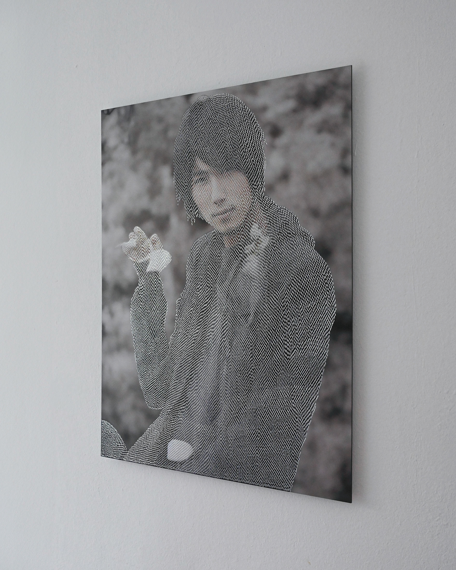This series consists of portrait works created by printing AI-generated images onto aluminum composite panels and applying traditional metal engraving techniques. The project is rooted in my experience of living abroad as an immigrant, constantly exposed to social conditions and institutional changes that directly affect one’s legal and social standing. Although one exists as an “individual” within institutional frameworks, one’s contours are repeatedly defined, managed, and updated through textual descriptions and numerical data recorded in official documents. It is precisely this disjunction between lived existence and bureaucratic representation that forms the starting point of this work.