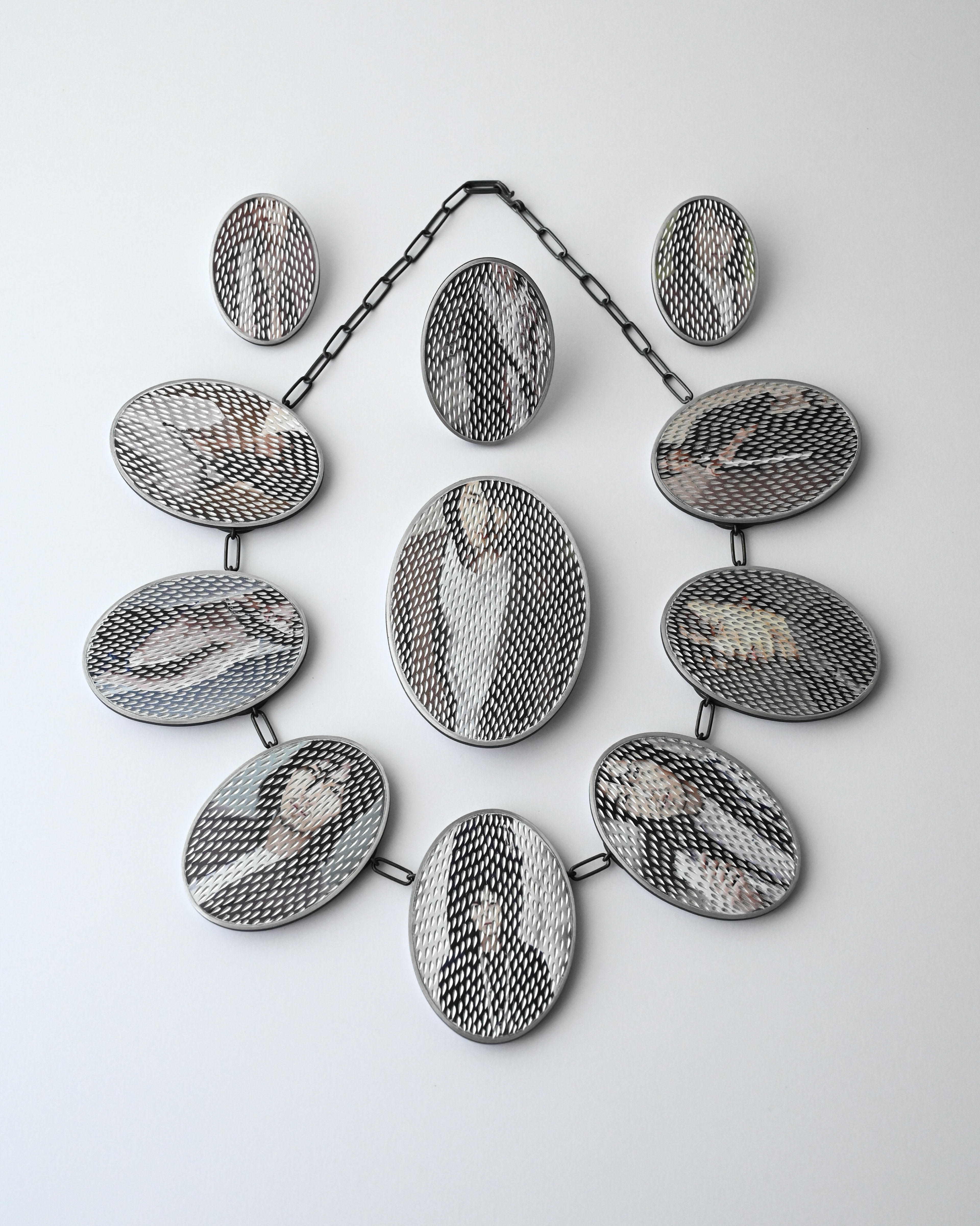 Portrait jewelry / necklaces, 70x6mm, 620mm(length), earrings, 50x35x13mm